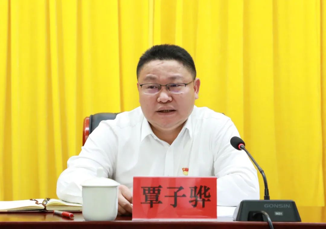 图为市委常委、市纪委书记、市监委主任覃子骅讲话