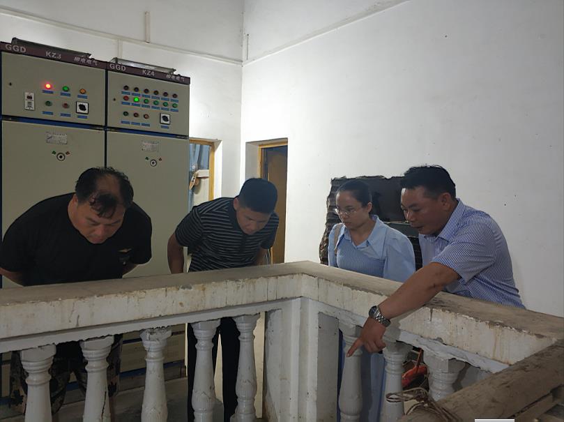 图为凭祥市纪检监察干部查看排水泵站抽水情况
