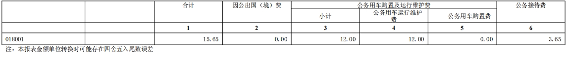 (一)2024年部门预算共安排“三公"经费支出预算15.65万元(全口径),其中:因公出国(境)经费支出预算0.00万元,公务接待费支出预算3.65万元,公务用车购置及运行费支出预算12.00万元(公务用车购置费0.00万元,公务用车运行维护费12.00万元)。