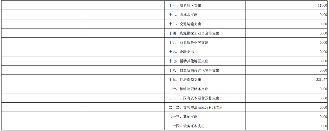 4.住房保障支出221.57万元,占支出总预算5.70%,比上年减少12.74万元,减少5.44%,主要原因是:因2023年调出人员及退休人员比调入人员缴费基数高,公积金缴费基数下降,该支出较上年减少。