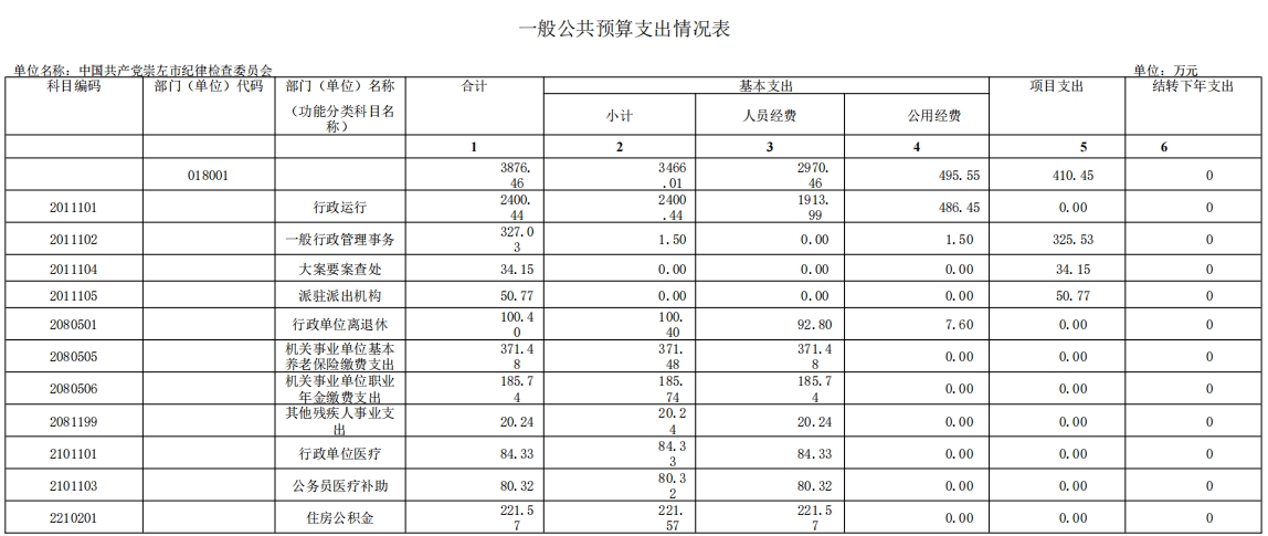 第三部分:中国共产党崇左市纪律检查委员会2024年部门预算相关报表