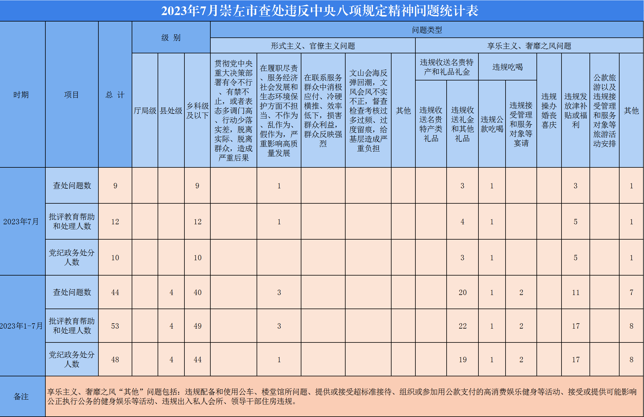 2023年7月崇左市查处违反中央八项规定精神问题9起