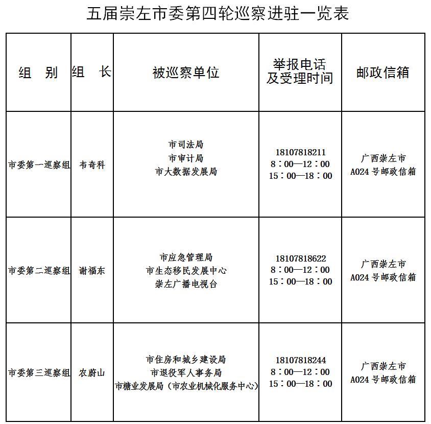 根据市委统一部署,截至4月28日,五届市委第四轮巡察3个巡察组完成了对市司法局、市住房和城乡建设局、市退役军人事务局、市大数据发展局、市审计局、市应急管理局、市糖业发展局(市农业机械化服务中心)、市生态移民发展中心、崇左广播电视台等9个市直单位党组(党委)的进驻工作,五届市委第四轮巡察工作全面展开。