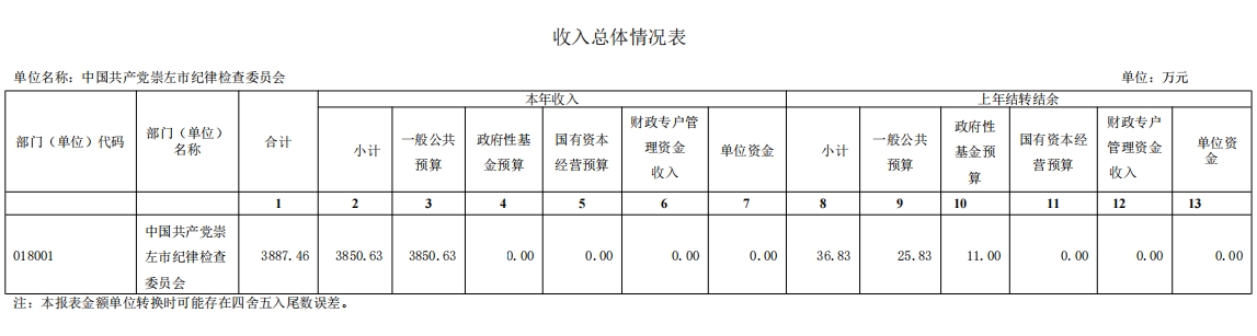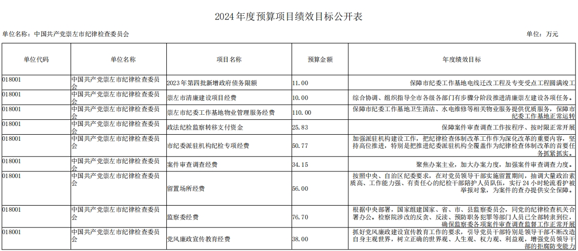 第三部分:中国共产党崇左市纪律检查委员会2024年部门预算相关报表
