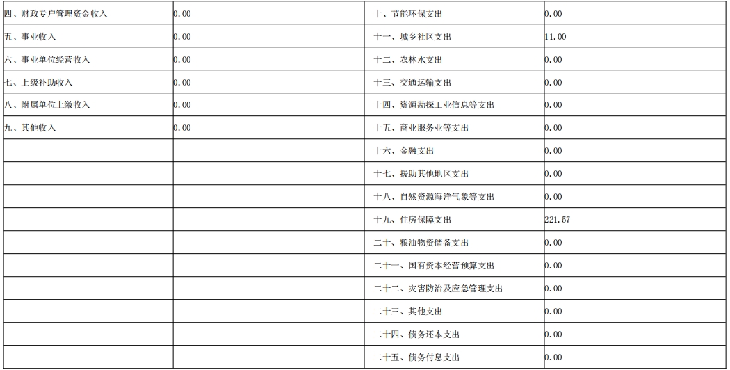 4.住房保障支出221.57万元,占支出总预算5.70%,比上年减少12.74万元,减少5.44%,主要原因是:因2023年调出人员及退休人员比调入人员缴费基数高,公积金缴费基数下降,该支出较上年减少。