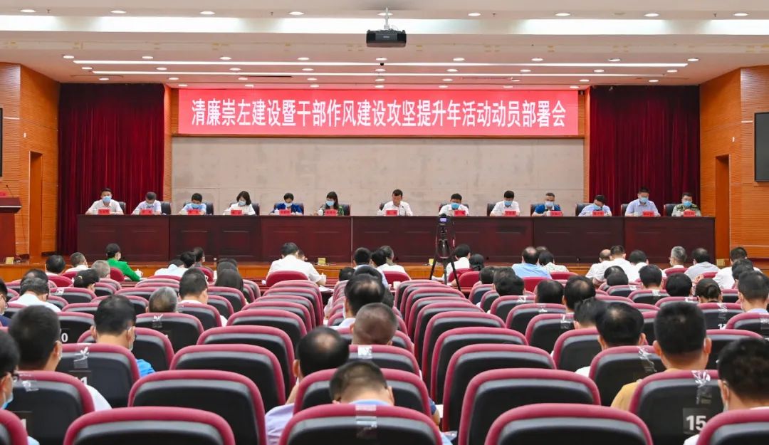 4月26日,崇左市召开清廉崇左建设和干部作风建设攻坚提升年活动动员部署会暨全市领导干部警示教育大会和加强对“一把手”监督工作约谈会。市委书记蓝晓出席会议并讲话,要求全市各级各部门要深入学习贯彻落实党的十九大和十九届历次全会精神,持续深入学习贯彻落实习近平总书记视察广西“4·27”重要讲话精神,认真贯彻落实十九届中央纪委六次全会和自治区第十二次党代会、自治区纪委十二届二次全会及崇左市第五次党代会精神,动员全市党员干部大力弘扬伟大建党精神和党的自我革命精神,系统推进清廉崇左建设,扎实开展干部作风建设攻坚提升年活动,以全市查处的违纪违法案例为反面典型,以案示警、以案明纪、以案促改,压紧压实各级党委(党组)及其“一把手”管党治党政治责任,坚定不移把全面从严治党向纵深推进,更好地为实现“四个新”总要求、建设现代化南疆国门城市提供坚强有力纪律保障,以实际行动和优异成绩迎接党的二十大胜利召开。市委副书记、市长迟威主持会议。市人大常委会主任谭燕玲,市政协主席王建毅,市委副书记韦朝晖出席会议。