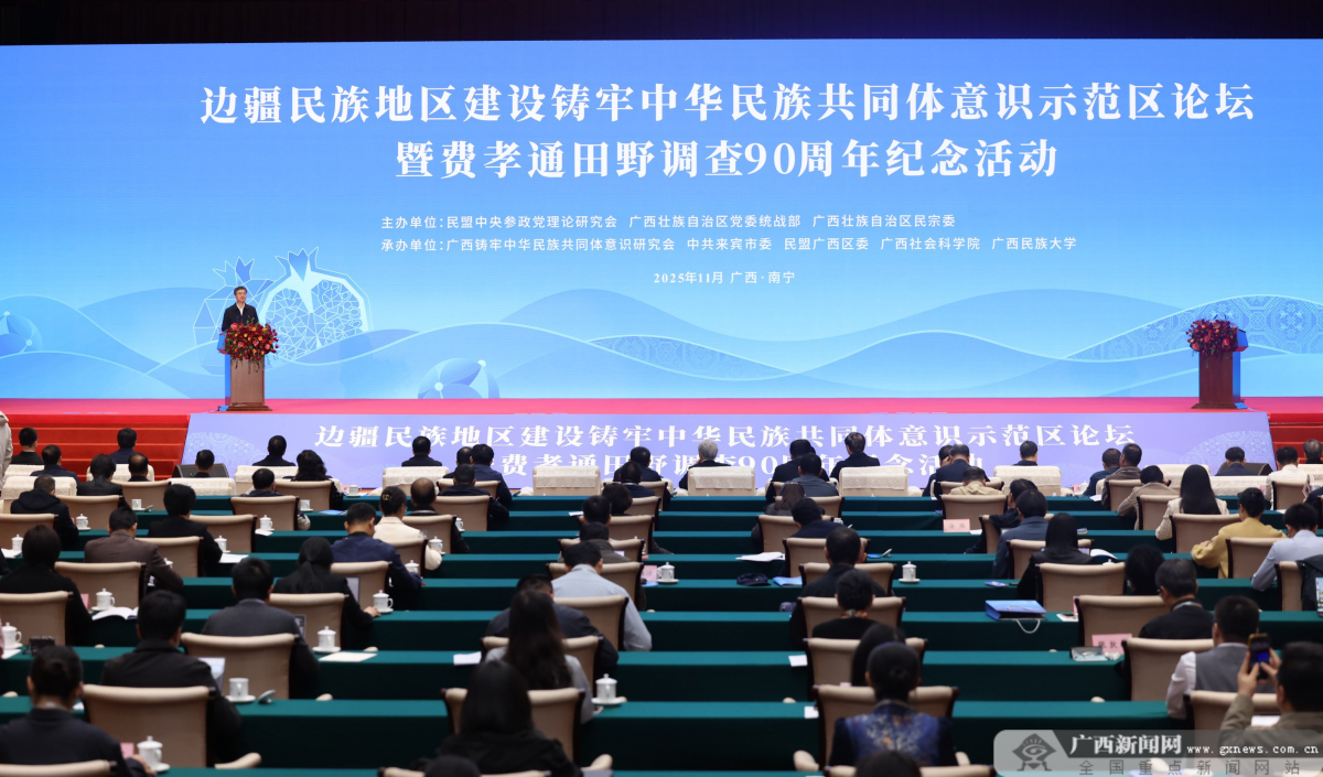 11月4日,边疆民族地区建设铸牢中华民族共同体意识示范区论坛暨费孝通田野调查90周年纪念活动在南宁举行,深入学习贯彻党的二十届四中全会精神和习近平总书记关于加强和改进民族工作的重要思想,共谋边疆民族地区发展,铸牢中华民族共同体意识,共同纪念和传承费孝通先生学术思想和高尚风范。全国人大常委会副委员长、民盟中央主席丁仲礼,自治区党委书记、自治区人大常委会主任陈刚出席并致辞。